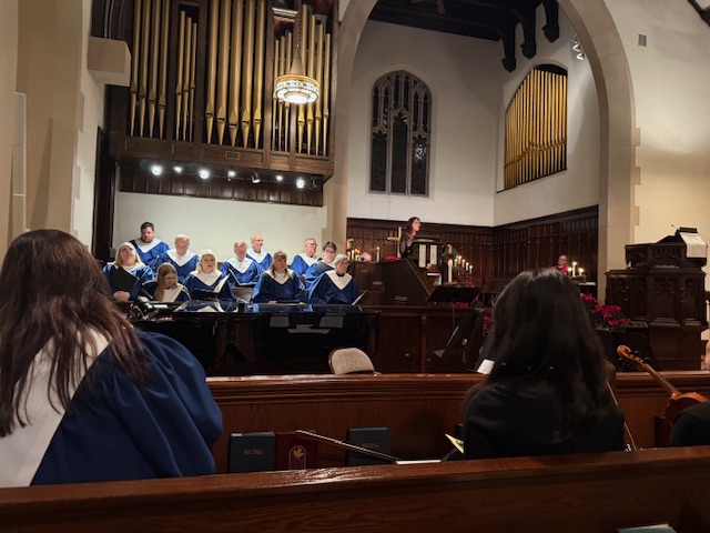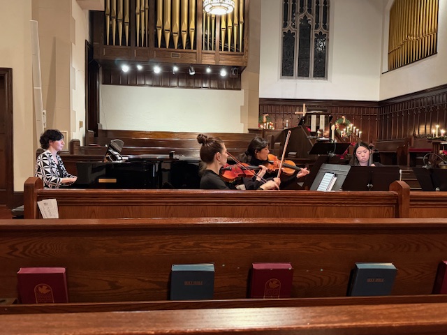 The shorter early service was designed to be especially family friendly, and the later service featured string players Jess Amidon, violin; Chloe Wang, violin; and Katie Chuang, cello; along with organist Yevgenia Semeina; soloists Eamon Arthur, Amanda Ketchpaw Palés, Ted Palés, and Jan Zimmerman; and the church choir. The later service also included candle lighting.
