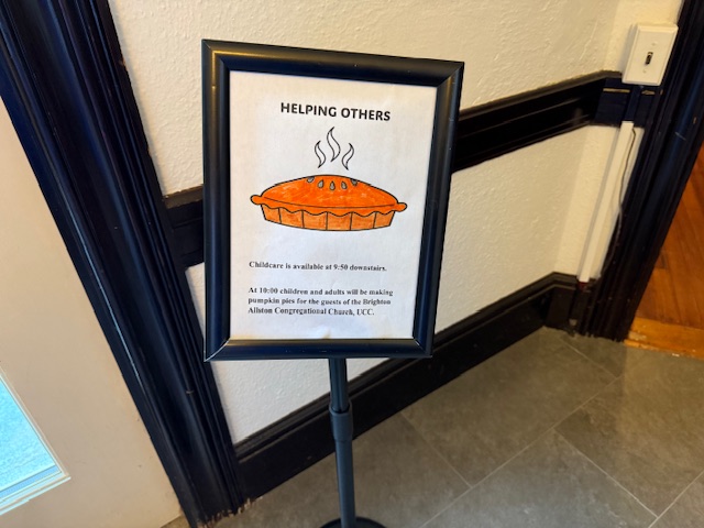 Families brought 20 meal kits to NHCC and, on Sunday, November 23, Director of Christian Education Wendy Donnell masterminded a pie-making activity in the church kitchen for about 20 children and parents, resulting in 12 freshly baked pumpkin pies.