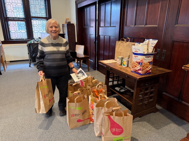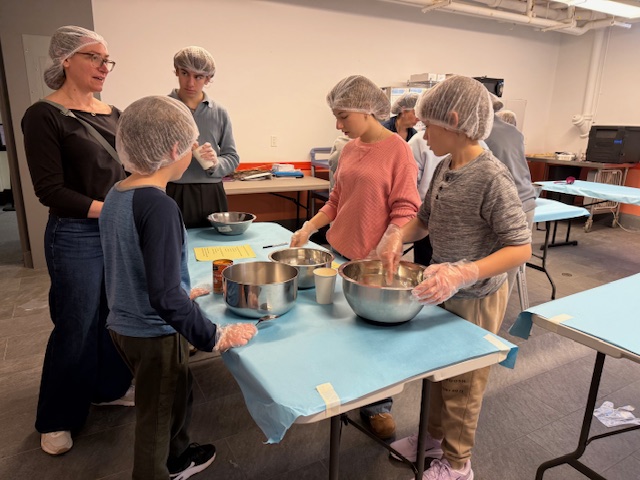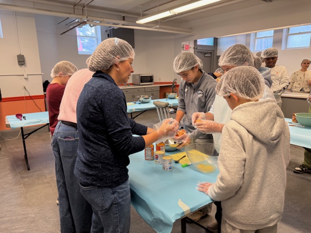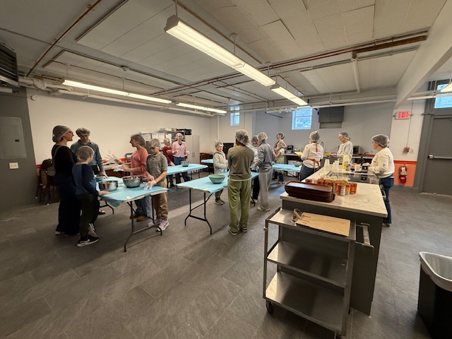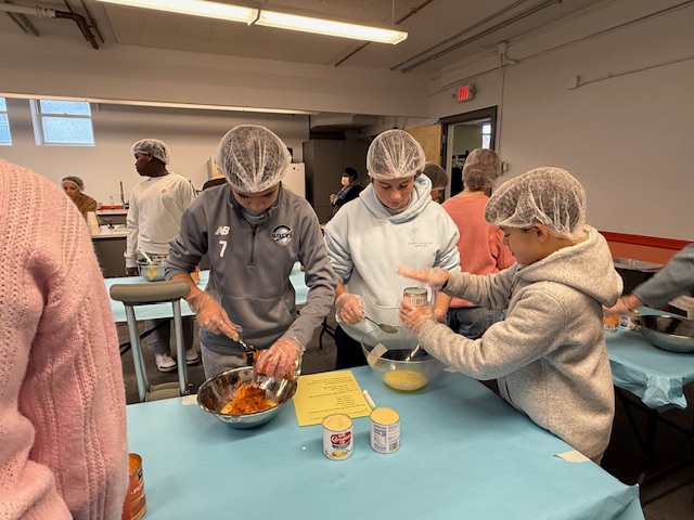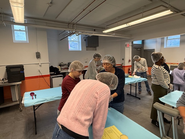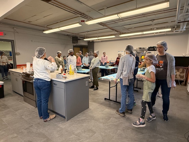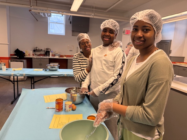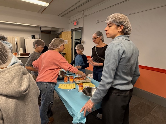 Children and adults from Newton Highlands Congregational Church, UCC (NHCC), shopped and cooked over several weeks in November 2025 to provide meal kits, roasted turkeys, mashed potatoes, and pumpkin pies for a Thanksgiving feast for 300 people at Allston Brighton Food Pantry.