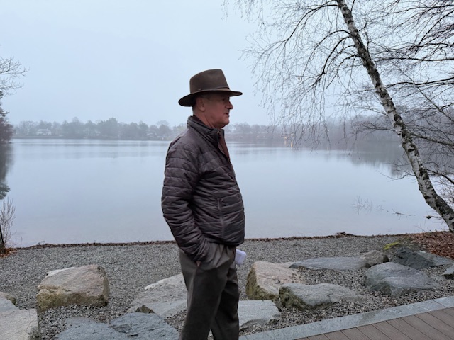 The April 5, 2026, Easter celebrations at Newton Highlands Congregational Church, UCC, began with a 6:15 a.m. service overlooking Crystal Lake and led by the Reverend Dr. Ken Baily for about a dozen parishioners. Despite the lack of a visible sunrise, the atmosphere was upbeat.