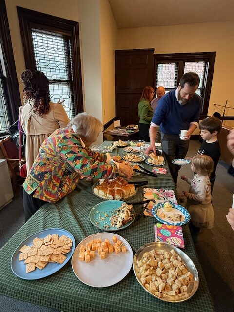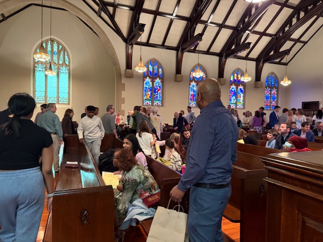 After the service, families gathered in the church parlor for a lavish spread organized by the Mission Committee.