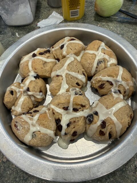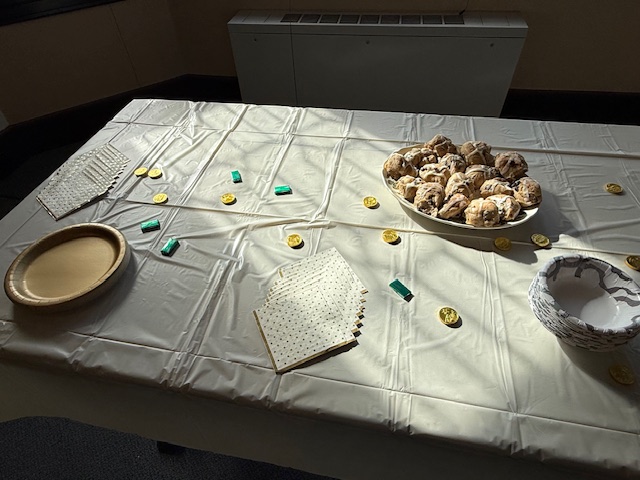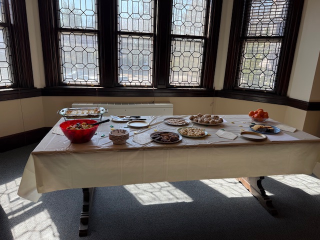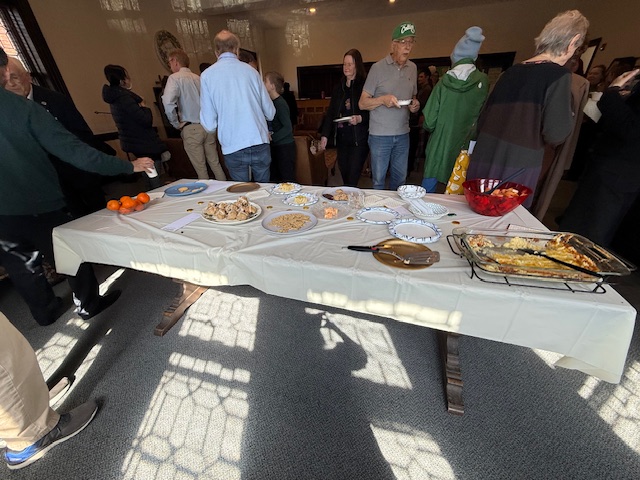 Congregants celebrated during a festive fellowship time with refreshments made by Alex Bezdek and Sally Brickell.
