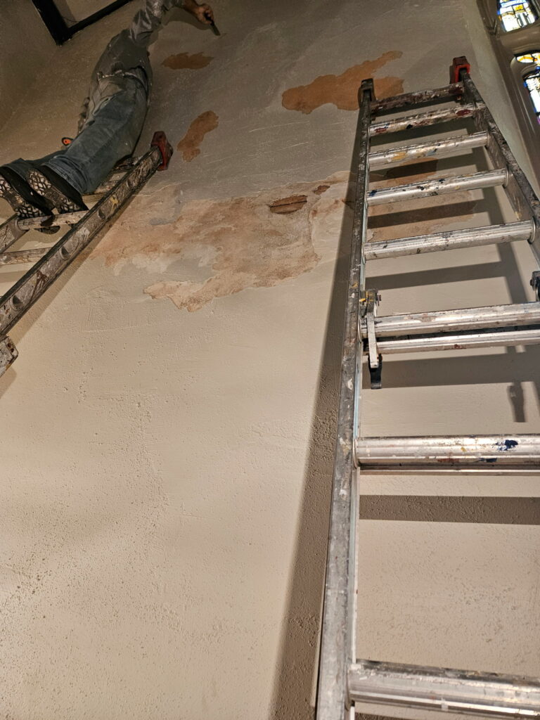 In December 2025, Building Manager Yoko Bryden oversaw repairs to an area near the organ in the sanctuary at Newton Highlands Congregational Church, UCC.